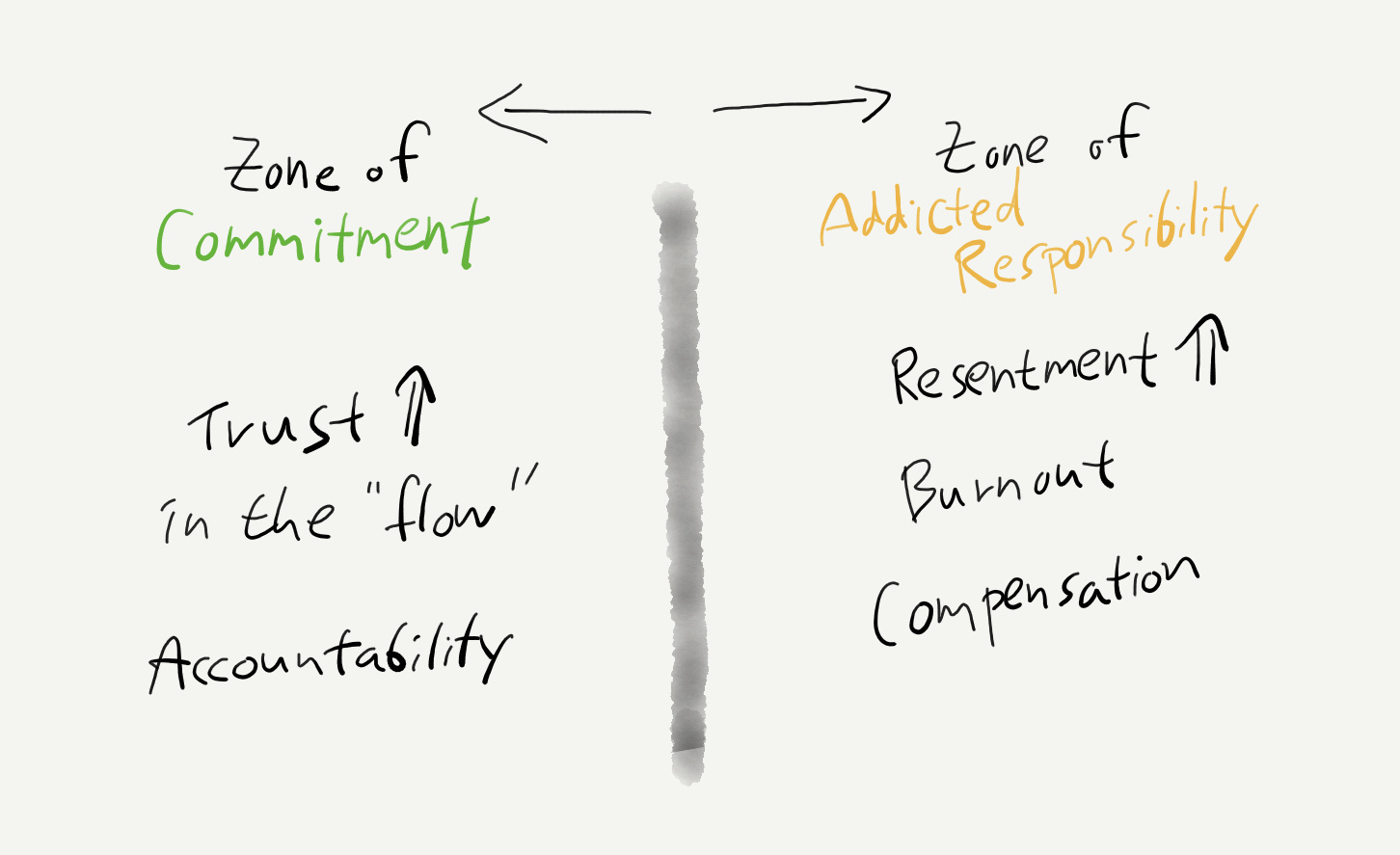 Now if we put these two spectrum together, in the middle, we have what I call the “Zone of Sustainable Commitment”: