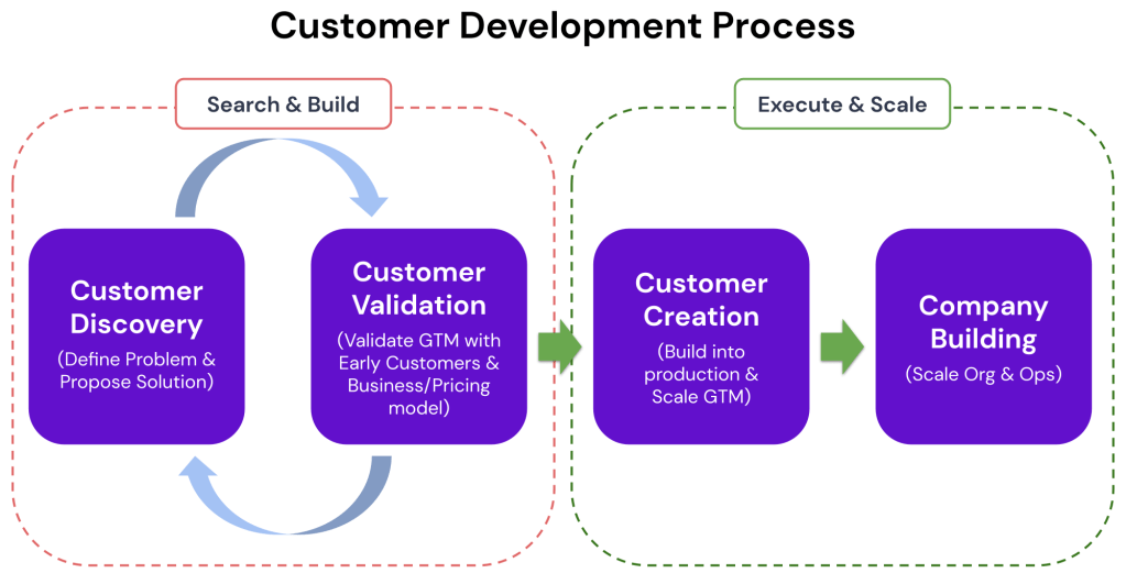 At a high-level, the team is using the customer development model, and is responsible for the first two cycles of iteration to find a new growth vector.