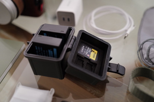 To carry the batteries and SD cards, I use the JJC portable battery & memory card case. While the Fuji batteries leave a bit too much space inside the case, the included sponges help keep them relatively secure in place.